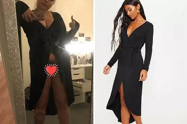 英国女子Bethanie Moore日前在PrettyLittleThing网站看上一条连衣裙,真是既性感又打折,于是立刻下单……但等实物寄来穿上了身,却与网站模特儿的样子大相径庭。胸部还行,嗯,可这下摆……怎么开衩儿竟高及肚脐,这下面啥也拦不住啊。此裙原价15英镑,66折后仅售10英镑。Moore强调,网站女模特儿穿的是6-8号,一般英国女性穿12号,她特意买大,订了14号……“怎知一穿,优雅全无,特像‘失足妇女’”。Moore将照片上传,希望卖家解释原因,同时配文:我当时还看上了一件绿色的,如果再订,看来要定16号才行……呃,我说Moore啊,你真的确定这只是尺码的问题吗?
