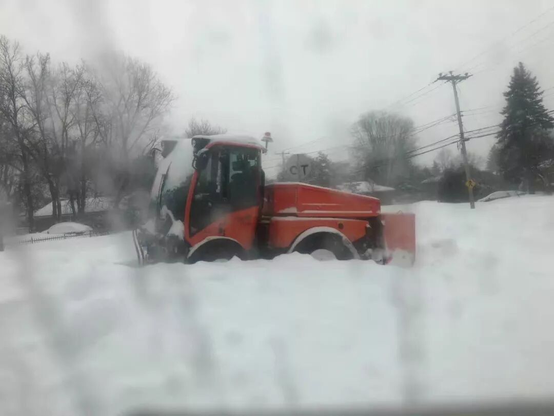 事实上,即便除雪卡车扫过一遍,降雪仍在继续,路面不一会儿就再度积雪。