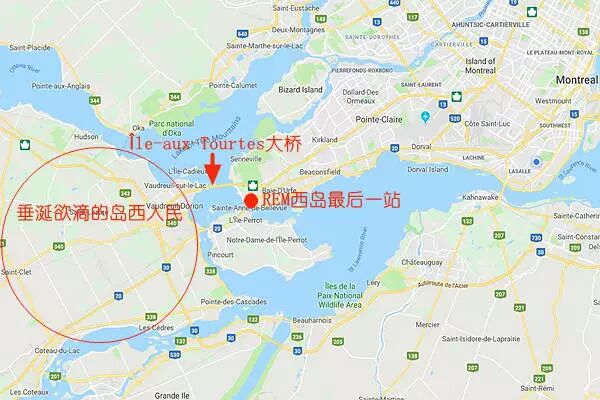 预计于2023年完工的REM轻轨将连接蒙特利尔市中心、特鲁多机场、Deux-Montagnes、南岸与西岛。其于西岛的最后一站被设在Sainte-Anne-de-Bellevue,这令蒙特利尔岛西的居民垂涎欲滴。岛西居民称,他们每天都要去岛内上班,一些人花在路上的时间多达3个小时,人们不得不拥堵在Île-aux-Tourtes桥上,而每天使用这座大桥的汽车多达83,000辆……岛西Hudson和Vaudreuil-Dorion两市市长也表示,他们正与大批通勤者一起向魁省政府施压,要求将REM列入预计于2030年落成的新Île-aux-Tourtes大桥的设计之中,并于未来将REM网络扩至岛西。本周早些时候,魁省交通部长François Bonnardel已授权CDPQ研究REM向南及向北延伸的可行性,然而,他却未对向西延伸作出任何评论。