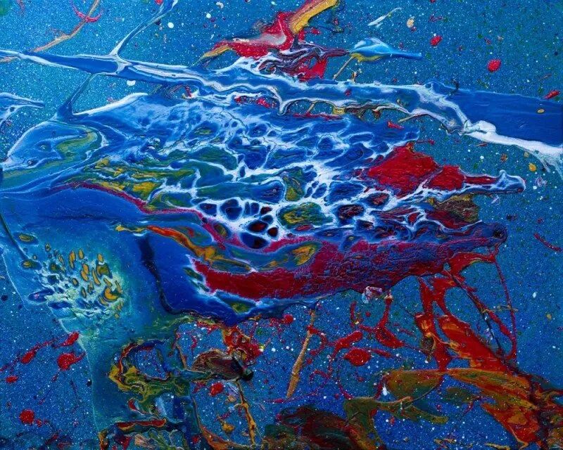 “我画画是没有任何计划的。当我在画布上滴下油彩前,我只是告诉自己,今天要做一幅美丽的、抽象的、宇宙作品。我画画时觉得很自由,它帮我逃离这个狭小的世界,为我创造出了一个全新的宇宙!”Aelita说。