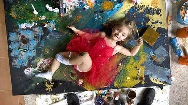 “我就看着Aelita在我的面前完全呈现她的创意,真的很有意思!当我站起来看这幅画时,我对Aelita的‘随手涂鸦’有了新的想法。我觉得她不是玩颜料,而是完成了一幅作品。”Aelita的爸爸说。