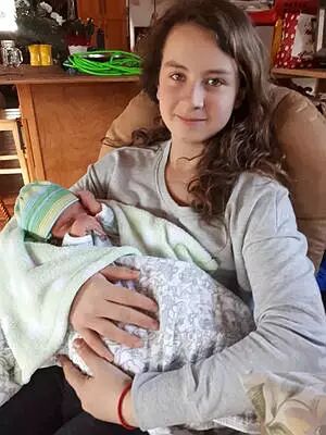 家住BC省Cariboo地区Meldrum Creek的Liz Verges半夜开始宫缩。她决定赶在婴儿出来前,开车45分钟赶到最近的威廉姆斯湖医院。对此早有筹谋的她立刻给邻居打去电话,让人帮忙照看家中的儿子,由另一位邻居开车,带上13岁的女儿……出发。然而她算不如娃算,车开半道娃等不及了。开车的邻居想把车停在路边,但Liz却狂喊“快开”……这把坐在后排的女儿Baileigh Stowell紧张得直抖。许是车太颠了,娃还是决定马上出来。于是,坐在后排的13岁女儿帮坐在前排的妈妈调整了姿势,在邻居的加油声中,小弟弟顺利生出。小姑娘事后表示,她曾去过牛犊诊所,知道很多关于母牛分娩的相关知识。接着,小姑娘将新鲜的小弟弟裹在一张毯子里,并确保他呼吸畅通。医院到了,小姑娘脚不沾地抱着毯子直飞急诊室,还没忘请护士用担架把妈妈抬了进来。母子平安,男婴6磅重,非常健康。现已回家休养的Liz大赞女儿大赞社区大赞邻居。出差在外、接获喜报的丈夫,心已回家。