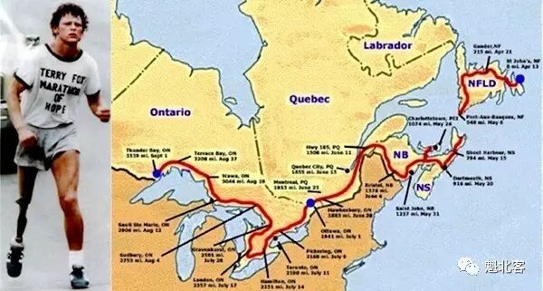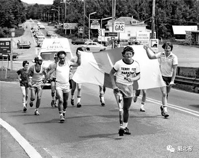 39年前的今天(1980年4月12日),21岁的福克斯拖着义肢,从纽芬兰省的圣约翰出发,开始了他的“长途马拉松”---他要跑步横跨加拿大,为癌症募捐,去实现他“使别人活得更好”的梦想。