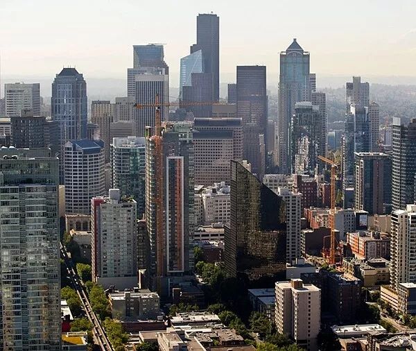 随着亚马逊 (Amazon)、谷歌(Google)和其他科技公司在西雅图增聘人员,该市用来兴建办公楼和公寓楼的起重机,将比全美任何城市都要多。