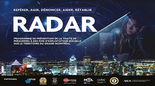 蒙特利尔警方,包括蒙特利尔警察局SPVM,Longueuil大都会警察局SPAL和Laval警察局,与大蒙特利尔酒店协会,蒙特利尔出租车局,蒙特利尔信息犯罪部,受害者援助中心以及Sun Youth合作,联手推出了一项旨在防止性剥削犯罪的计划---”RADAR”(Repérer识别,Agir行动,Dénoncer谴责,Aider协助,Rétablir恢复)。于此计划下,RADAR将成为一个相对独立的执法部门,可以整合并处理与性剥削受害者相关领域的所有情况。