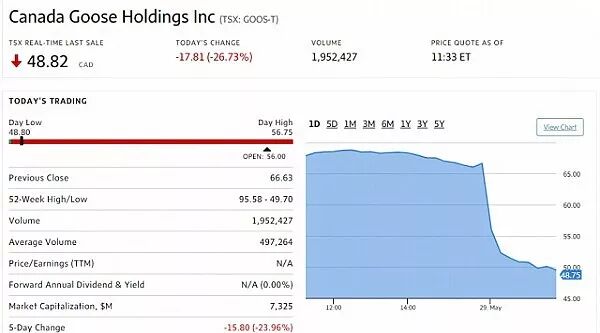 加拿大鹅股票断崖跳水
