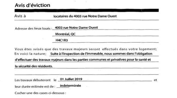 蒙特利尔Saint-Henri一栋公寓楼的租客们不久前都收到了一份“来自魁省租屋委员会的限期搬家通知”,要求他们在六月底之前必须搬走。信中称,在对Du Couvent街角附近的建筑进行检查后,业主将不得不进行大量翻修且完成时间不确定,因此所有租客都必须按期撤离。但细看之后,租客们心生疑窦……经魁省租屋委员会(Régie du logement)鉴定,果不其然,该份通知竟是伪造的……委员会称,即便建筑要进行重大施工,魁省的房东也只能发出“临时搬迁通知”,且必须说明具体施工项目,同时于装修后房租不得更改。委员会表示,他们已计划对该业主采取法律行动。