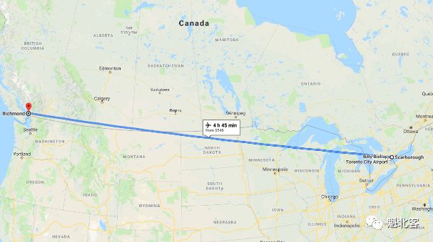 这个几乎横跨加拿大的单程距离,光是坐飞机都需要四个多小时!