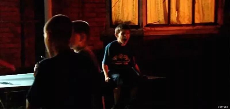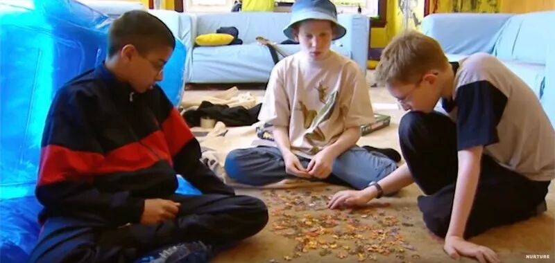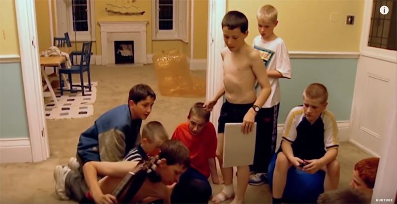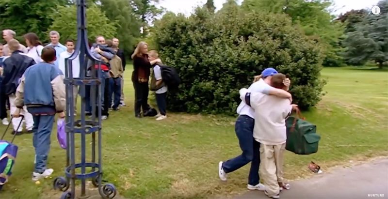 第五天早上,实验终于到了尾声。父母们站在外面的草地上,焦灼地等待着孩子们从房子里出来。这还是男孩们第一次离开家这么长时间。