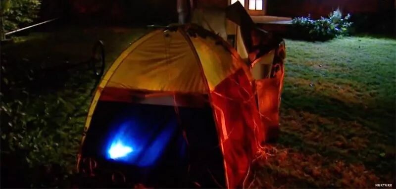 迈克因为第一天把爆米花都粘在了地毯上,受到了所有男孩的排挤,一直被当作攻击目标。他决定在帐篷里睡,却也躲不开男孩们的围攻,他们轮流往迈克的帐篷上踢球。迈克伤到了脸,他气急了。