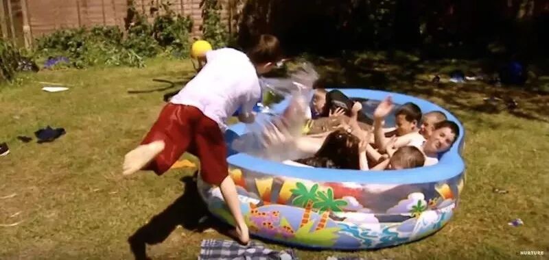 于是他们架起充气游泳池,一个个都跳进了水里。事实上,他们也一连三天没洗澡换衣服了,在戏水池里的时候,也是他们最接近清洁自己的时刻......