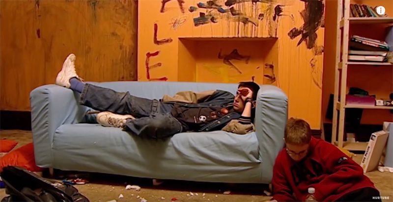 男孩们一进房子,就用油彩把墙面涂了个脏,爆米花扔了一地,房间一片狼籍。男孩想要挑战规则,想要知道“破坏”的底线在哪里。