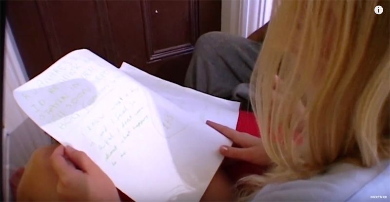 几个女孩蹲在厕所门口求沙黛出来,于是她通过门缝写长信,来解释自己为何不高兴......