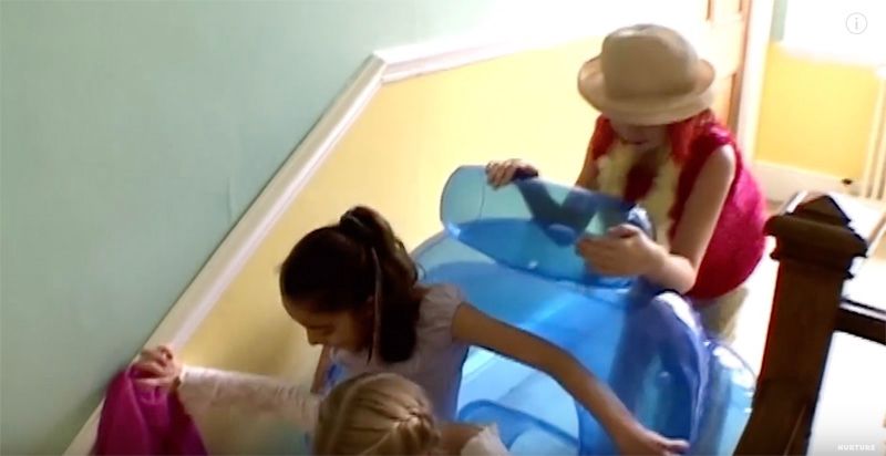 还一起把充气沙发推下楼梯当滑梯!
