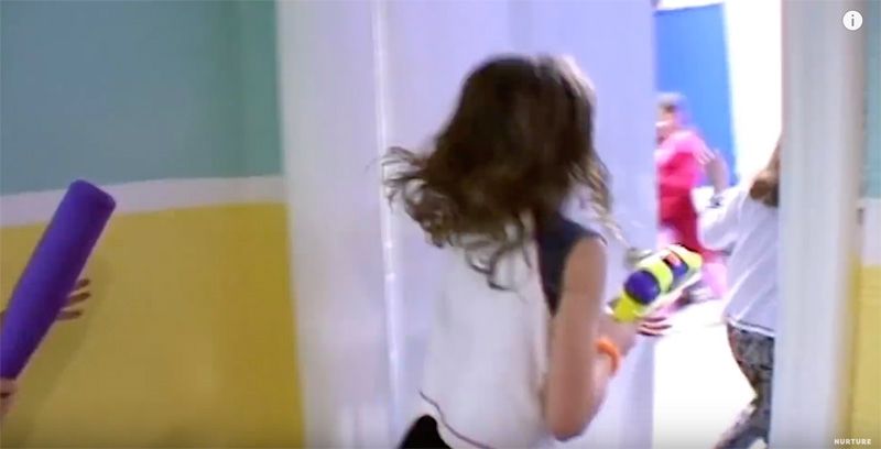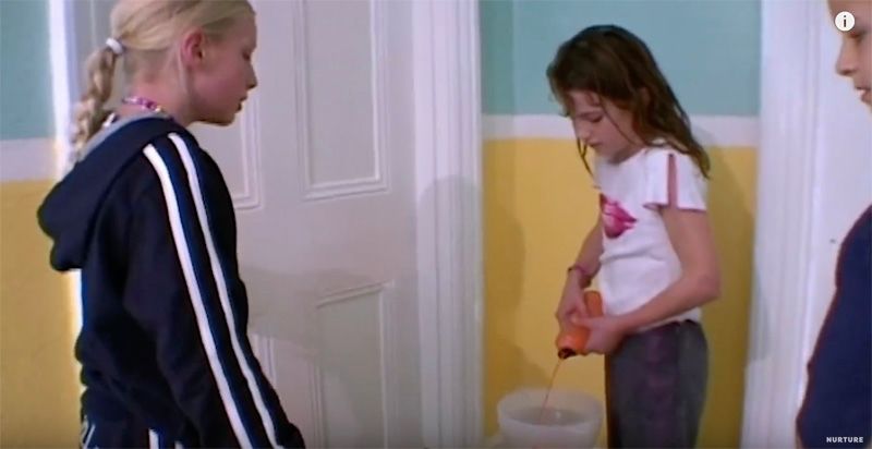 于是,男孩社会第四天才上演的“战争”,女孩社会在第一天就开始了。两个房间的女孩们开始不分青红皂白地互喷水枪,每个人的睡衣和床都湿了。