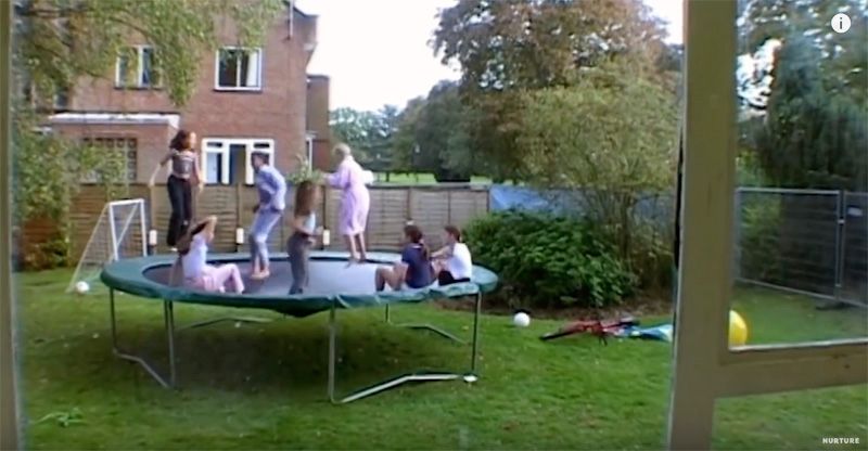 玩起来也互相爱护,十个人一起在蹦床上跳都没关系。