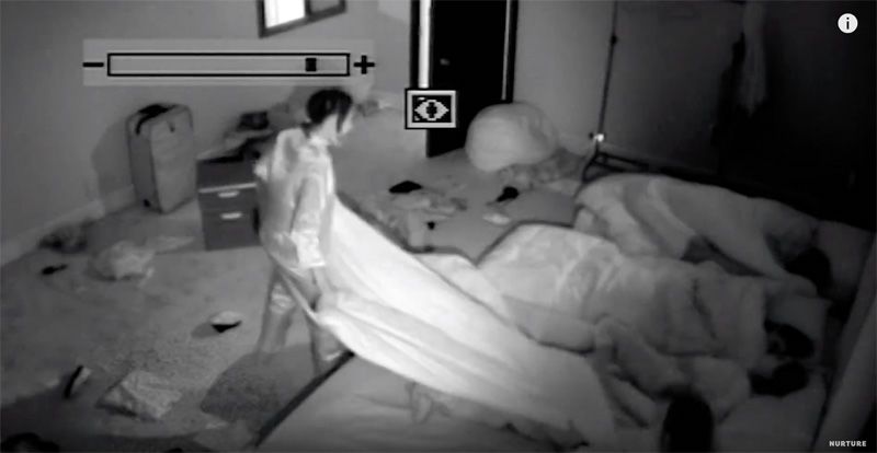 沙黛一看怒了,她以为是盖比干的,就拿了喷水枪,朝着盖比的床眦水。