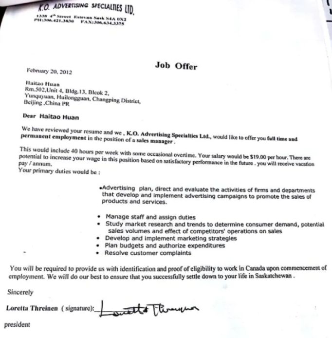 根据这些邮件,CBSA认定“收到Mike Fritzler工作邀请的SINP申请人,没有有效的工作”。