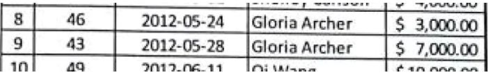 根据CBSA在王奇和崔玉娟家中搜查到的一本支票簿,以及一份银行对账单和电子邮件显示,2012年Gloria Archer因提供一份工作机会收到两笔款项,一笔3000,另一笔7000。