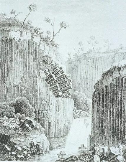 他们从中美洲采集了6000种植物标本,其中有3500种是欧洲人从来没见过的。洪堡在中南美洲的这五年时间,做了大量的考察笔记,岩层、构造、生物学、古生物学、地质学,每个细节都做到了,到了古巴,他还把看到的火山喷发的玄武岩的柱状节理给仔细地画了下来。