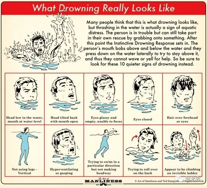 溺水者的这些动作很容易被看成是“故意的戏水姿势”,周围的人常常会忽视实际上的险情。