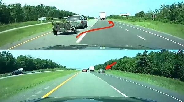 上周四,一名司机在Bromont的10号高速公路行驶,其车载摄像头拍下了一起“危险超车”的场景。视频显示,一辆拉着拖车的面包车先是从左边超车道超越了摄像车,之后急速跨越车道,于右边路肩超越了一辆大型卡车。魁省省警看过视频后表示,此行为非常危险,是绝对禁止的。该名肇事司机一经查获,将面临扣分及罚款。希望目睹此事件的人向警方报案,于必要时提交视频,以推进警方调查。