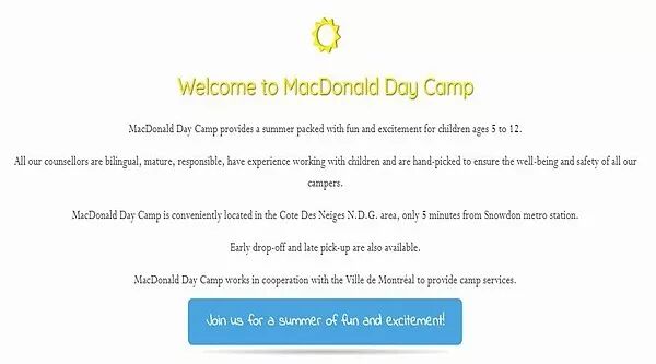 据悉,MacDonald Day Camp主要招收5-12岁的孩子。他们在其网站上写着: