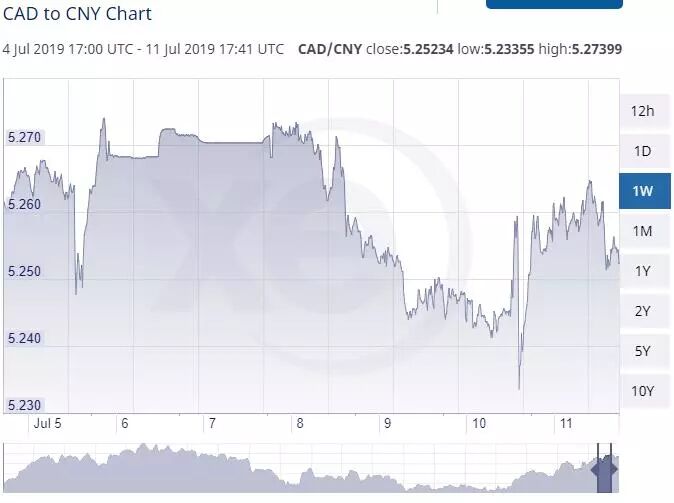 受央行宣布继续维持利率不变的消息影响,加元汇率瞬间跳水,人民币与加币汇率直接本周初的从5.27左右下跌至5.24-5.25区间,一度还直奔5.23。