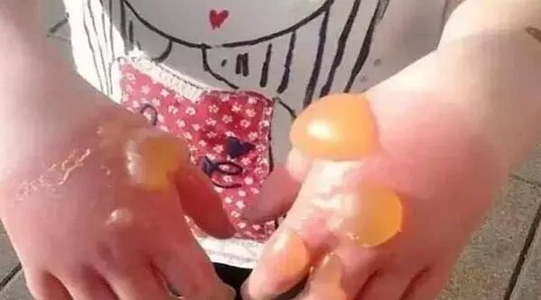 上图,一名10岁小女孩于野外游玩时不小心触碰了大猪草,先是双手大面积红肿,之后起了水疱,随之皮肤溃烂,被医生诊断为三度烧伤。