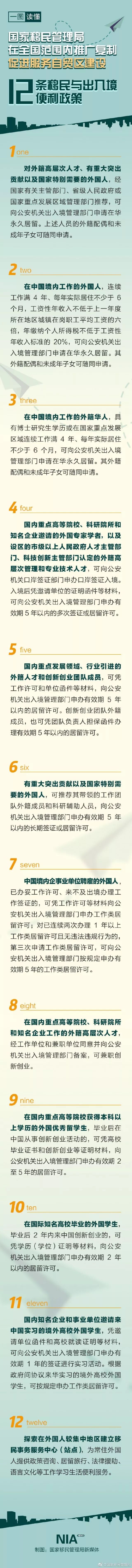 12条移民与入境便利政策详情: