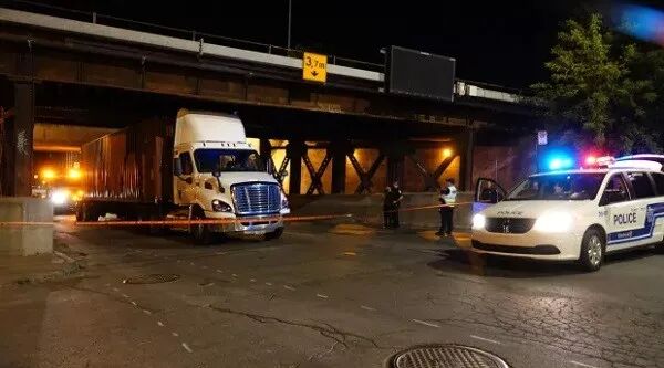 周二晚上,一辆大卡车被卡在了Guy立交桥下。卡车顶部受损严重,但司机没有受伤。该立交桥位于Argyle 街与St-Antoine街路口附近。立交桥南北两侧均设有黄色警示牌,提醒司机此桥限高3.7米。常见的大卡车高度一般都在4.1到4.2米之间。据悉,这已是两个月以来于同一地点发生的第三起类似事故。