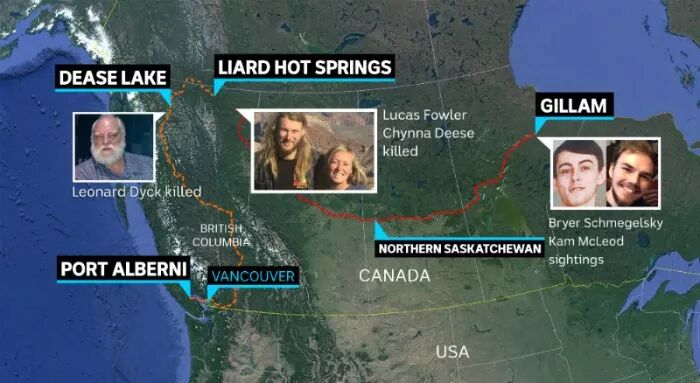 19岁的Kam McLeod和18岁的Bryer Schmegelsky是三起命案的嫌疑人,被控二级谋杀,正被全国通缉。