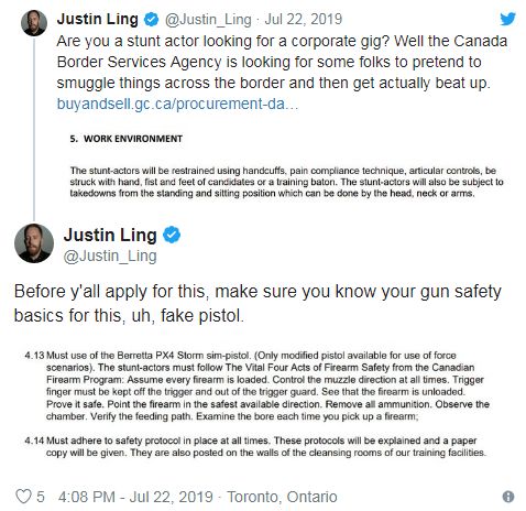 加拿大边境服务局(CBSA)正在招工,要求就是——会演、抗打!