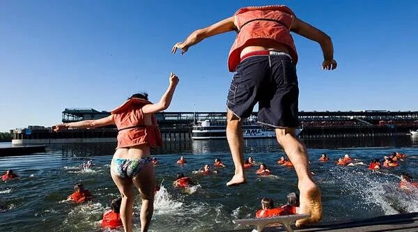昨天上午,一百多人从蒙特利尔Jacques-Cartier码头跳进圣劳伦斯河---这就是蒙特利尔一年一度的“Grand Splash(水花节)”(此为老编意译,直译为“盛大的飞溅”),活动旨在提高人们对水路、岛屿和海岸线水资源的认识。据悉,有关部门在活动前于码头附近进行了细菌学分析,结果证实“该区水域水质优良”。此活动办至今年已是第16届,但今年没有去年热闹。2018年7月3日,近150人参加活动,蒙特利尔市长Valérie Plante带头跳水,她的泳装照立刻登上了各大媒体的头版头条。详见:2018.07.04 魁北客【新闻九卦】 太热!蒙特利尔市长泳装出镜!