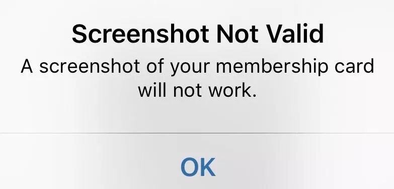 那么,以后是不是朋友间,我们互相发个电子会员卡的截图,大家就能共享使用会员卡了呢。可惜,这个办法行不通的。当小编进行电子会员卡截屏时,就收到了这样的提示。