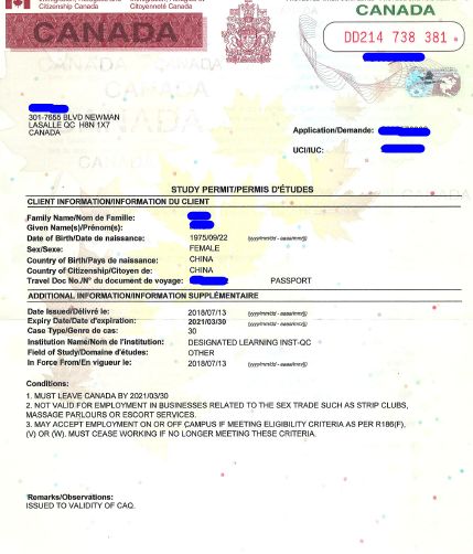 孩子办理学签时,如果家长拿的是旅游签,可以尝试询问移民官是否可以获得一年的居住权。如移民官同意您在加拿大居住超过半年,会打印一张 Visitor Record,看上去跟上方的 Study Permit 差不多。