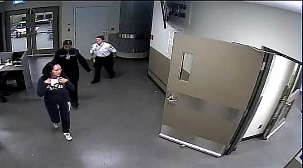 下午2点11分:孟被带离21号柜台,并被加拿大皇家骑警逮捕。下午2点15分:皇家骑警第一次告知她为何被捕以及相关的律师权利。