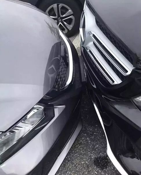 当日下午一点半左右,购完物回到车边的的华人女士发现,一辆比她晚到、停在她车辆正前方的车,与她的车头紧紧地贴在了一起。