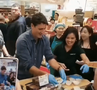 8月28日下午1:50左右,加拿大总理特鲁多现身位于温哥华列治文Lansdowne的大统华,亲手为华人顾客切月饼、发月饼!