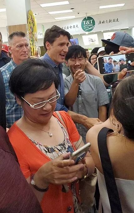 总理在,谁还管月饼。华人顾客们围着特鲁多狂拍照片,使劲录像……西人顾客原本就不多,即便有,好像也没挤进来……