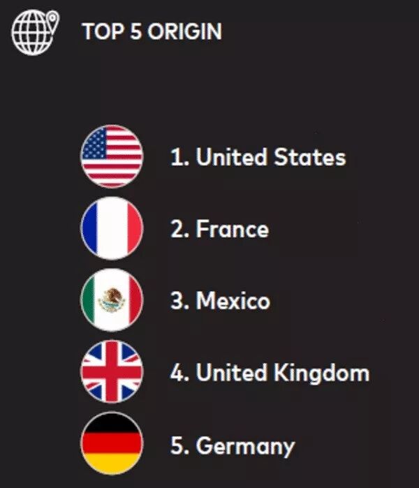 如图所示:美国游客最多,占蒙特利尔游客总数的61.9%,第二多的是法国游客:13.9%。墨西哥第三,英国第四,德国第五,各占蒙特利尔游客人数的2%左右。