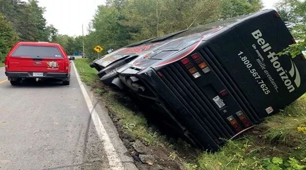 昨早8点半,一辆载有24名乘客的旅游大巴车在魁省L'Isle-aux-Coudres的Chemin des Coudriers上侧翻于路肩沟内,三人受伤被送往医院。其他乘客则改乘一辆校车前往当地的Hotel Cap-aux-Pierres酒店。来自魁北克城的一辆大型牵引车赶往事发地点将事故大巴拖走。魁省省警称,目前尚不清楚大巴司机为什么会失去对车辆的控制。