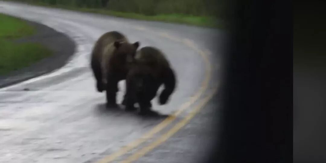 BC省居民Cari McGillivray日前在Stewart和Meziadin之间的Stewart Cassiar高速公路上,拍到了两只灰熊打架的场景。McGillivray在脸书上说:“一般情况下,我不会在这里发视频,但我这次真的很想和你们分享这个神奇而又罕见的灰熊打架场景。”