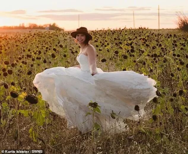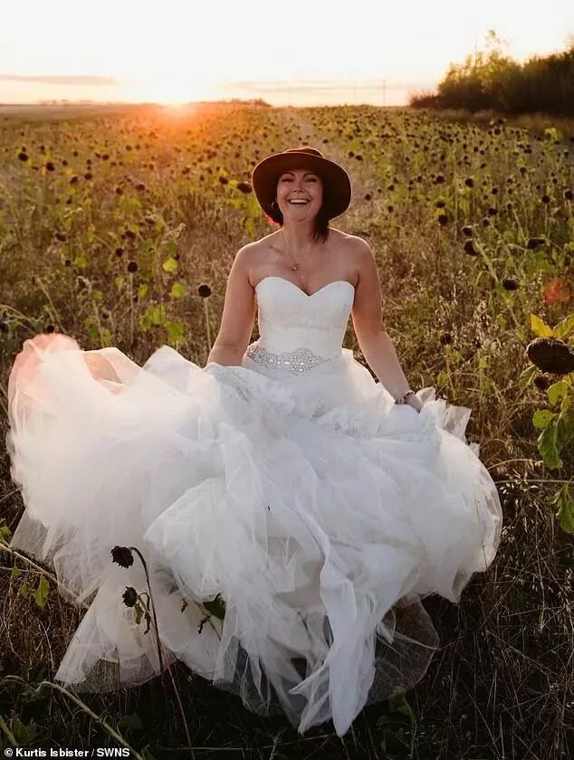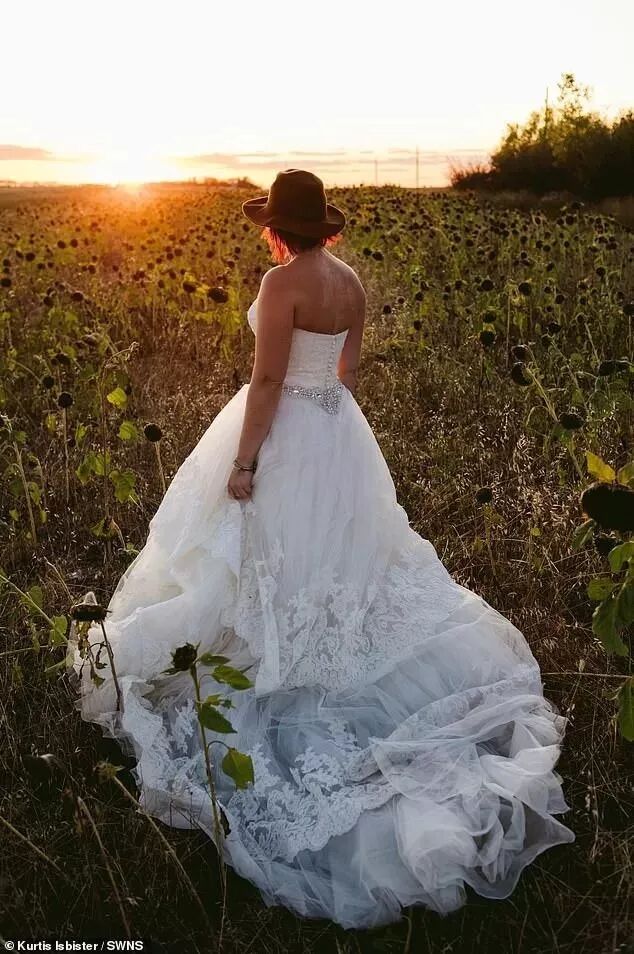 就在今年9月,也就是埃里克去世后的第7个结婚纪念日,凡妮莎在向日葵田里所拍的这张婚纱照,就是她新男友给帮的忙。