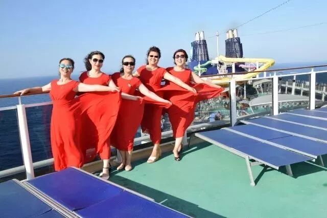 在全世界无情打击中国大妈形象之际,我们这群中国大妈迎风而上,一袭红红的长裙舞动在美丽的地中海上,自信优雅又咄咄逼人,我们就是想给那些攻击中国大妈的好事者提供又一个攻击的平台。