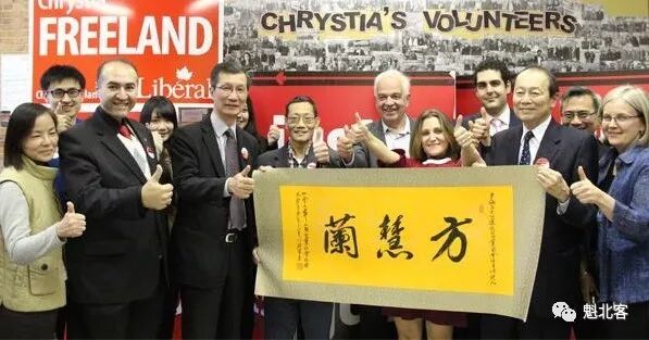 方慧兰这个名字是2013年取的,当时,Chrystia Freeland是多伦多中区自由党候选人。为了获得更多华裔社区的支持,正式取中文名“方慧兰”,并且热热闹闹地在多伦多举行了中文命名仪式。这是依照Freeland的谐音起的名字。“方”字乃中国常见姓氏,“慧兰”比喻慧质兰心、聪颖善良、品性高尚。不得不说,这个中文名起得确实很好。右五方慧兰 ,右六麦家廉(John McCallum)