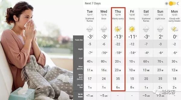 蒙特利尔周四体感温度-22℃