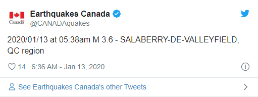 地震局表示,Montreal,Rigaud, Saint Bruno和Vaudreuil都有轻微震感,包括安省东部地区,纽约州及Vermont的居民,都会感到地震。目前没有损坏报告。住在魁省的你可能会感到疑惑,加拿大地震多发地区不是在加西温哥华那片吗?魁省也地震吗?会不会有大地震呢?