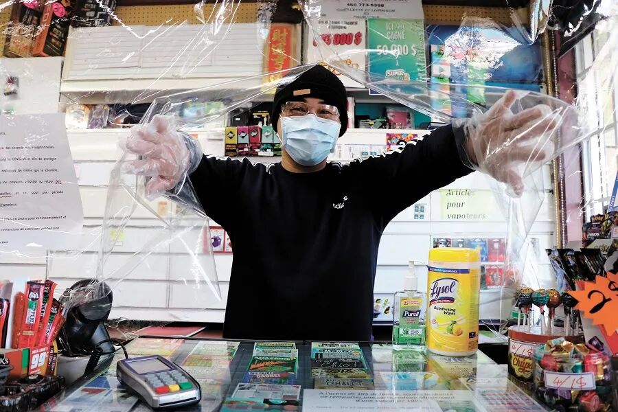 David Sun“改装”了他的DEPANNEUR(便利店),首先,他在收银台安装了透明的塑料膜,希望“御病毒塑料膜之外"。这对他和顾客都是一种保护。