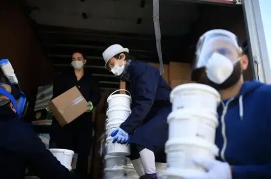 (La Presse 加拿大公共卫生当局开始建议民众佩戴非医用口罩。蒙特利尔一家食品银行的工人带着口罩正在卸货)